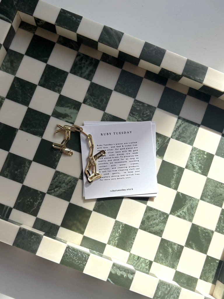 Add a modern twist to your jewellery collection with the paperclip bracelet. Featuring elongated, interconnected links in a sleek gold-plated finish, this bracelet offers a minimalist yet bold statement.